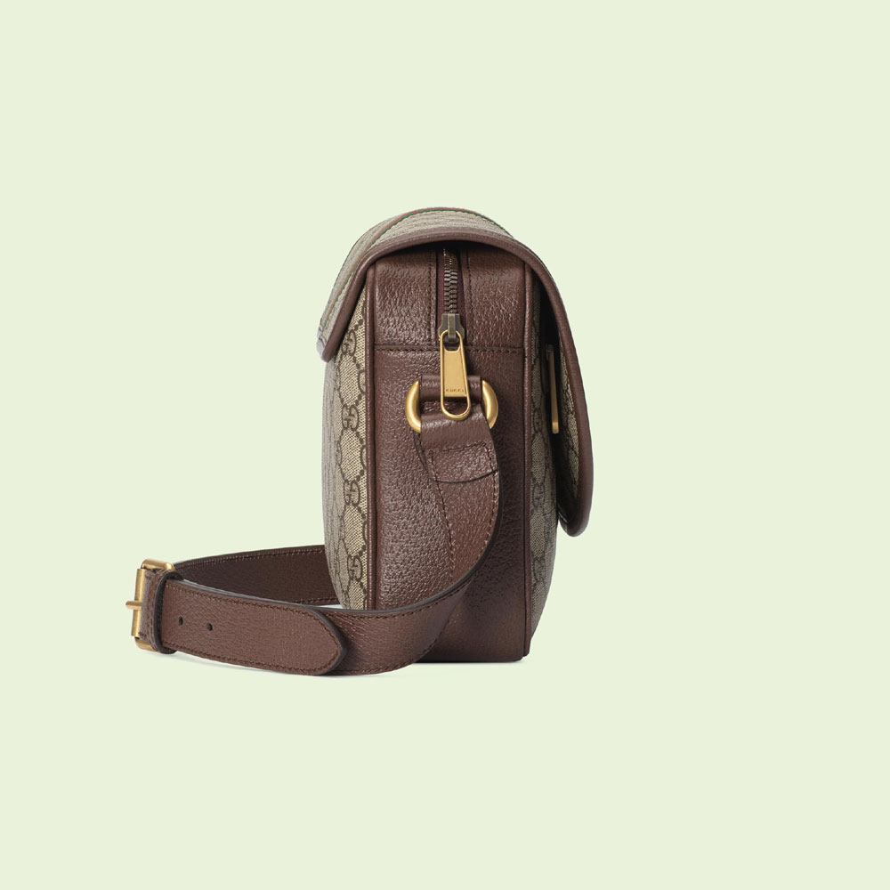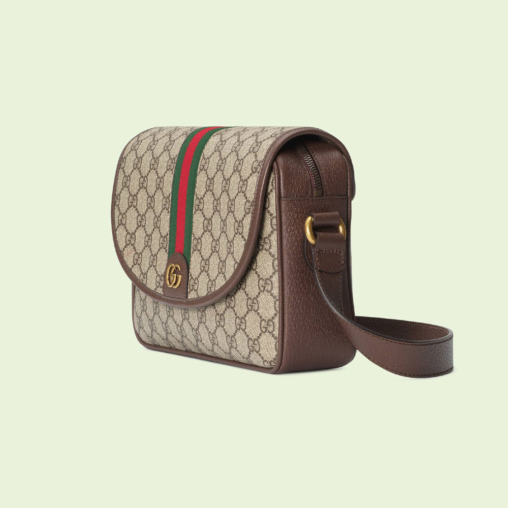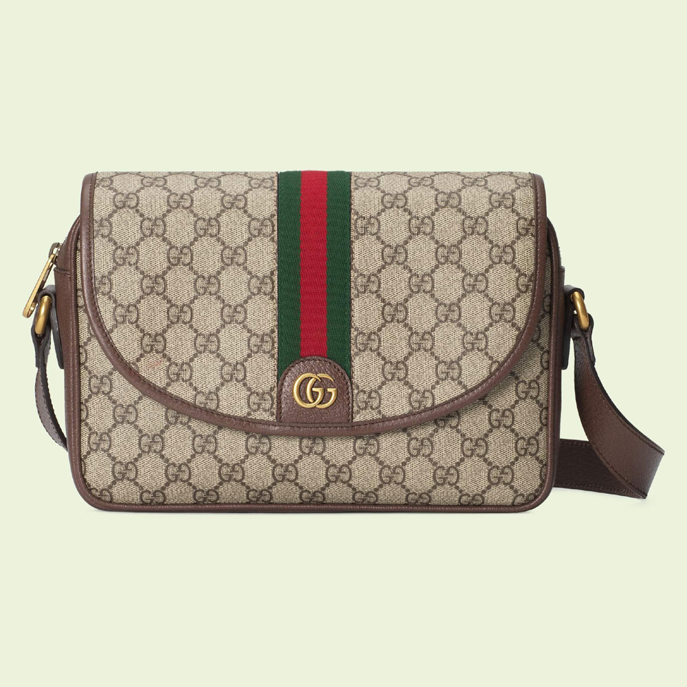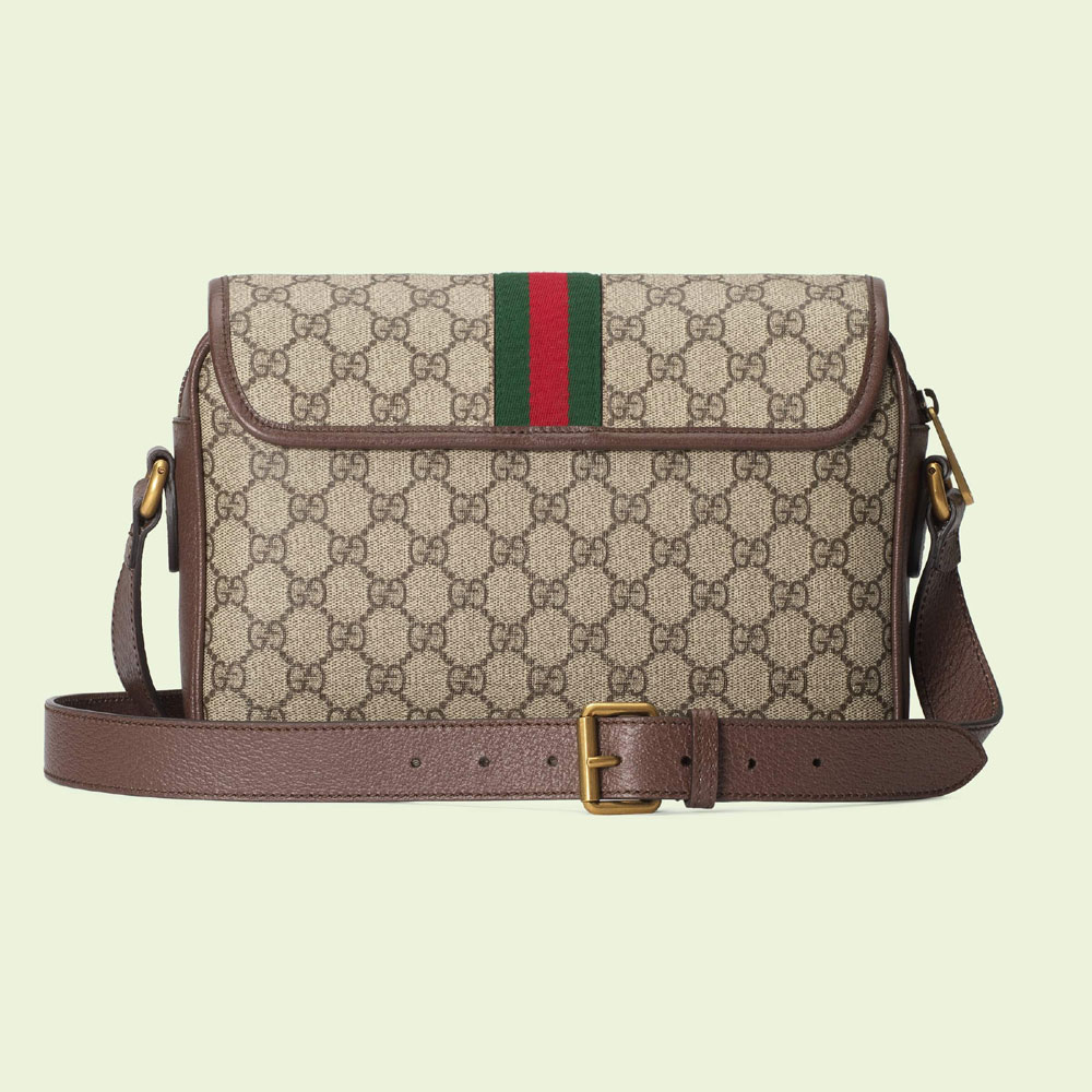 The GG Supreme canvas has come to the front of each collection decade after decade. becoming a hallmark of the House. Here the classic beige and ebony palette defines this Ophidia messenger bag. A green and red Web stripe completes the design as a subtle nod to the House's equestrian roots.