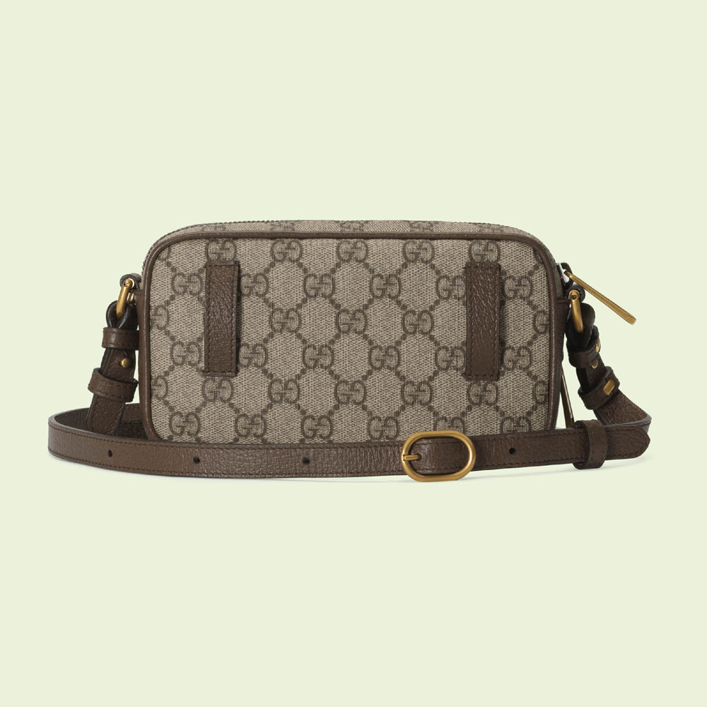 The world of Ophidia is enriched by a contemporary mini bag. crafted from the timeless mix of beige and ebony GG Supreme canvas. The logo appeal of this style is deepened by the green and red Web stripe and Double G hardwarearchival details that celebrate Gucci's history.