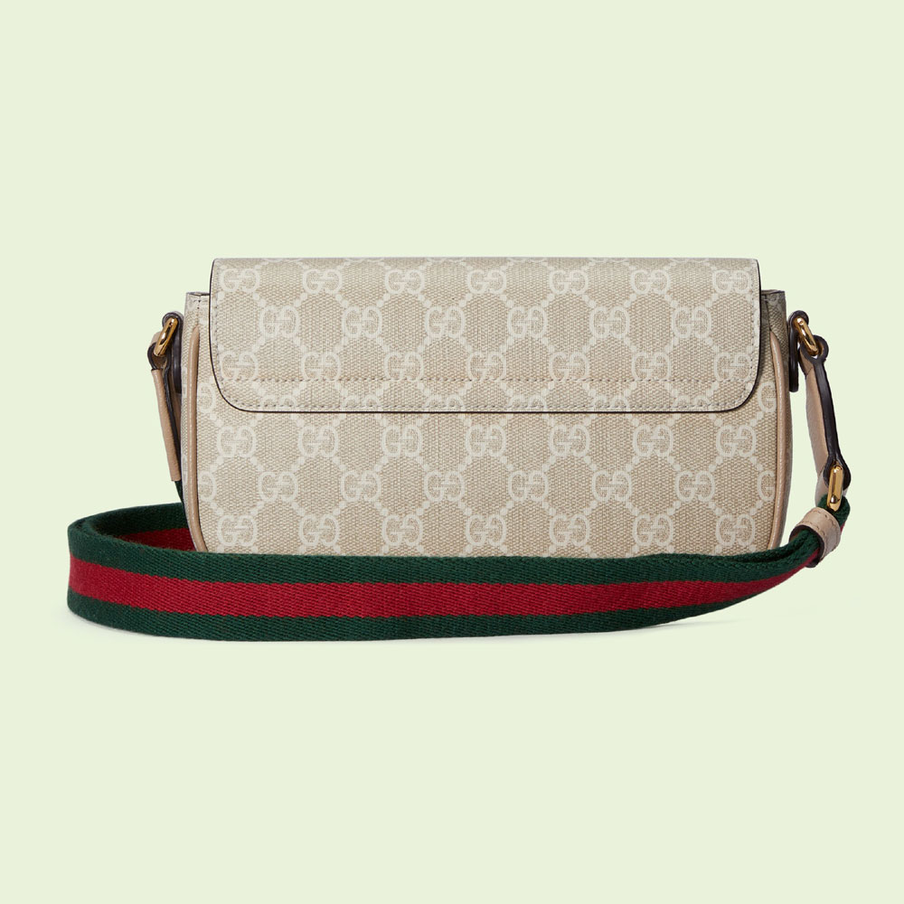 The world of Ophidia continues to evolve. incorporating new shapes and materials each season. Crafted from beige and oatmeal Supreme canvas. this mini bag is further enriched by the Double G hardware and a Web shoulder strap.