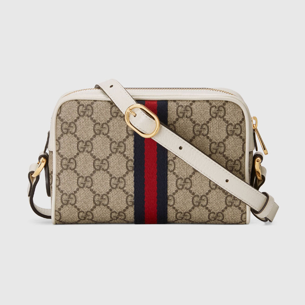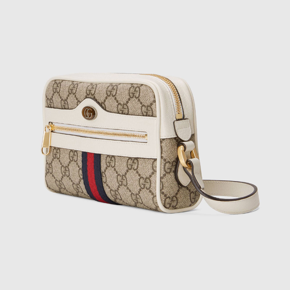 The world of Ophidia evolves with the introduction of a structured mini bag with a contrasting white leather trim. First used in the 1970s. the GG logo was an evolution of the original Gucci rhombi design from the 1930s. and from then it's been an established symbol of Gucci's heritage.