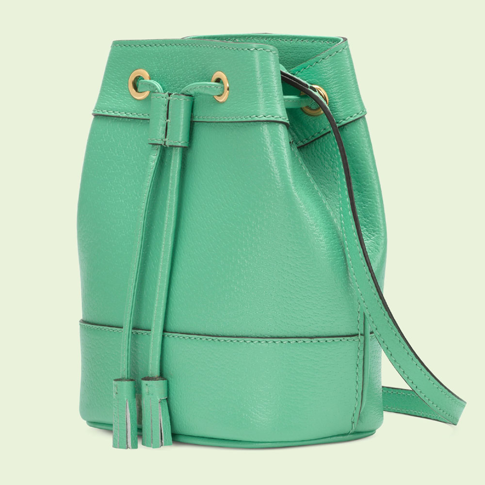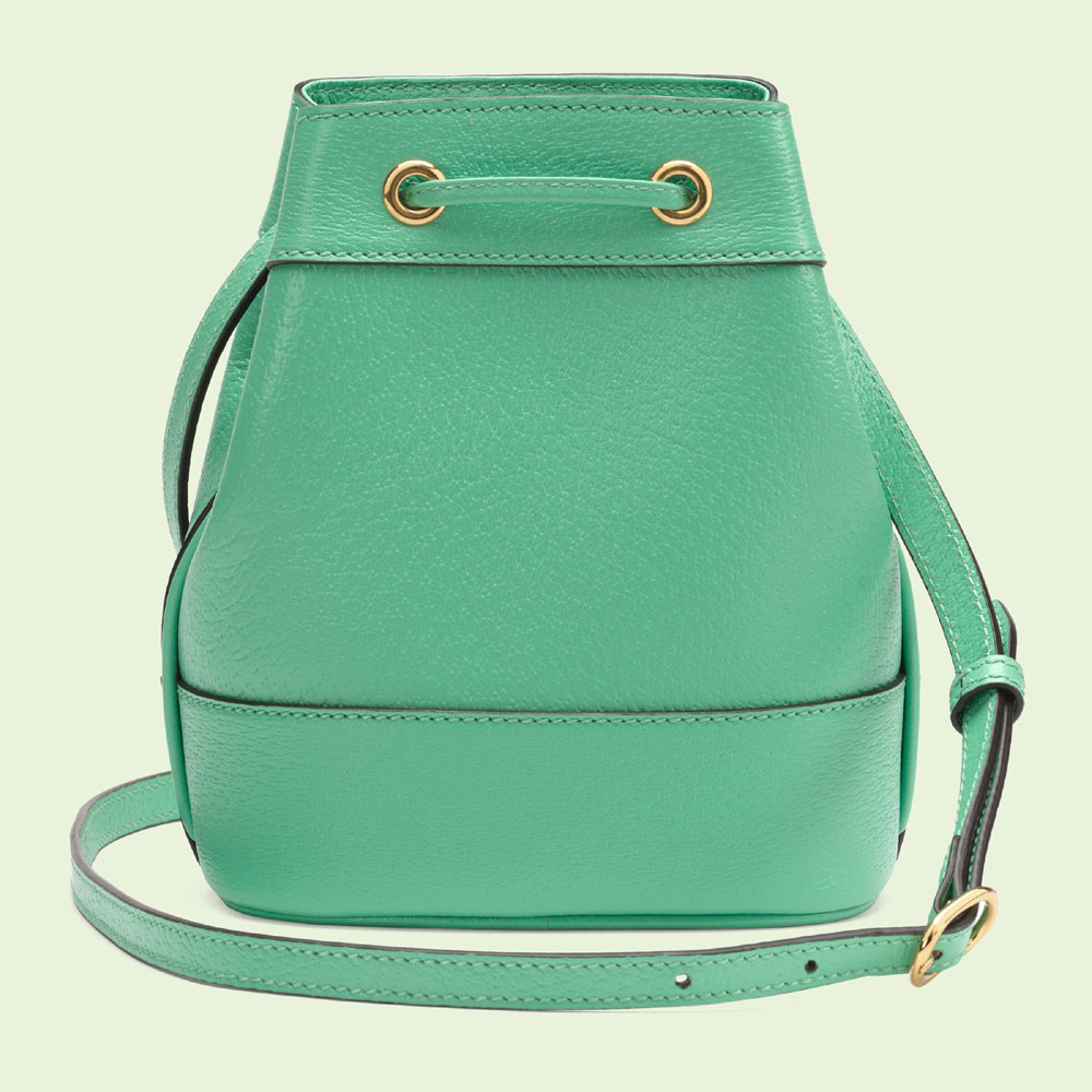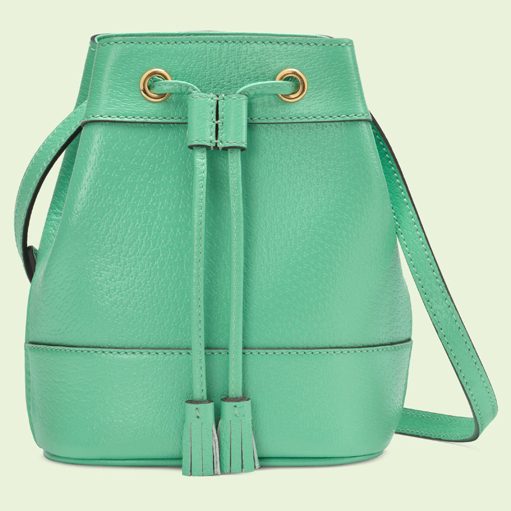 The Ophidia bucket bag continues to evolve as it explores fresh and refined hues. Crafted in soft mint leather with tonal trims and drawstring. the accessory is completed with an adjustable shoulder strap.