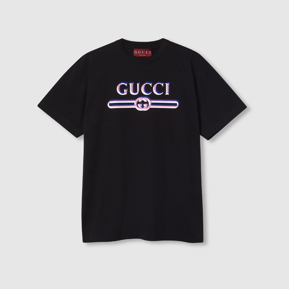 Gucci Printed Cotton Jersey T-shirt In Black 788093 XJG1J 1152