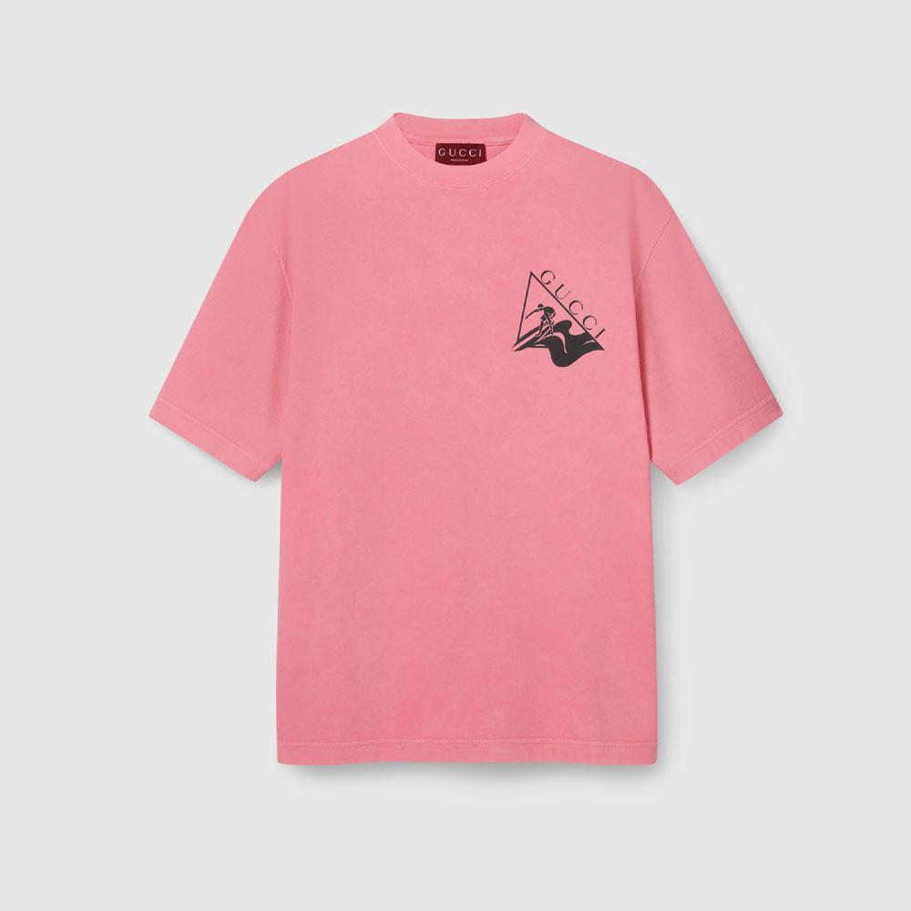 Gucci Printed cotton jersey T-shirt in pink 798115 XJG7Y 5139