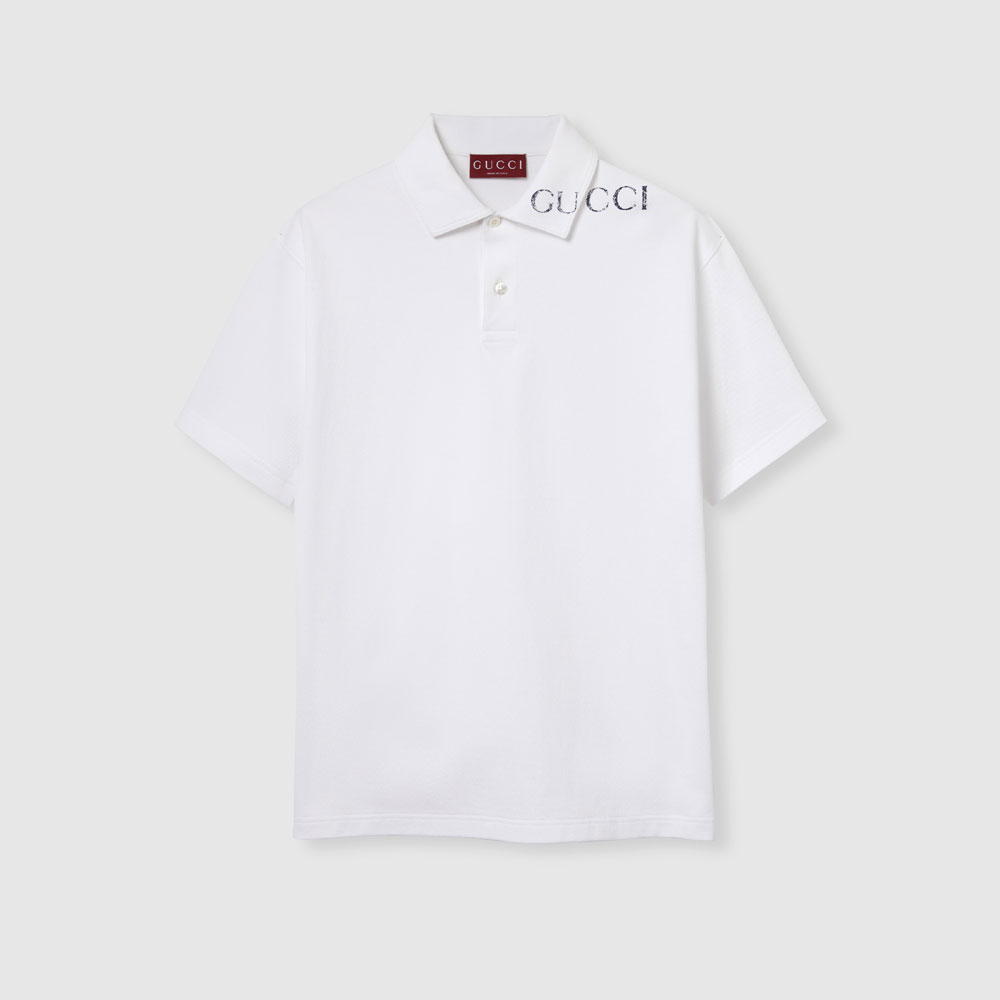 Gucci Printed cotton polo shirt in white 806255 XJG14 9074