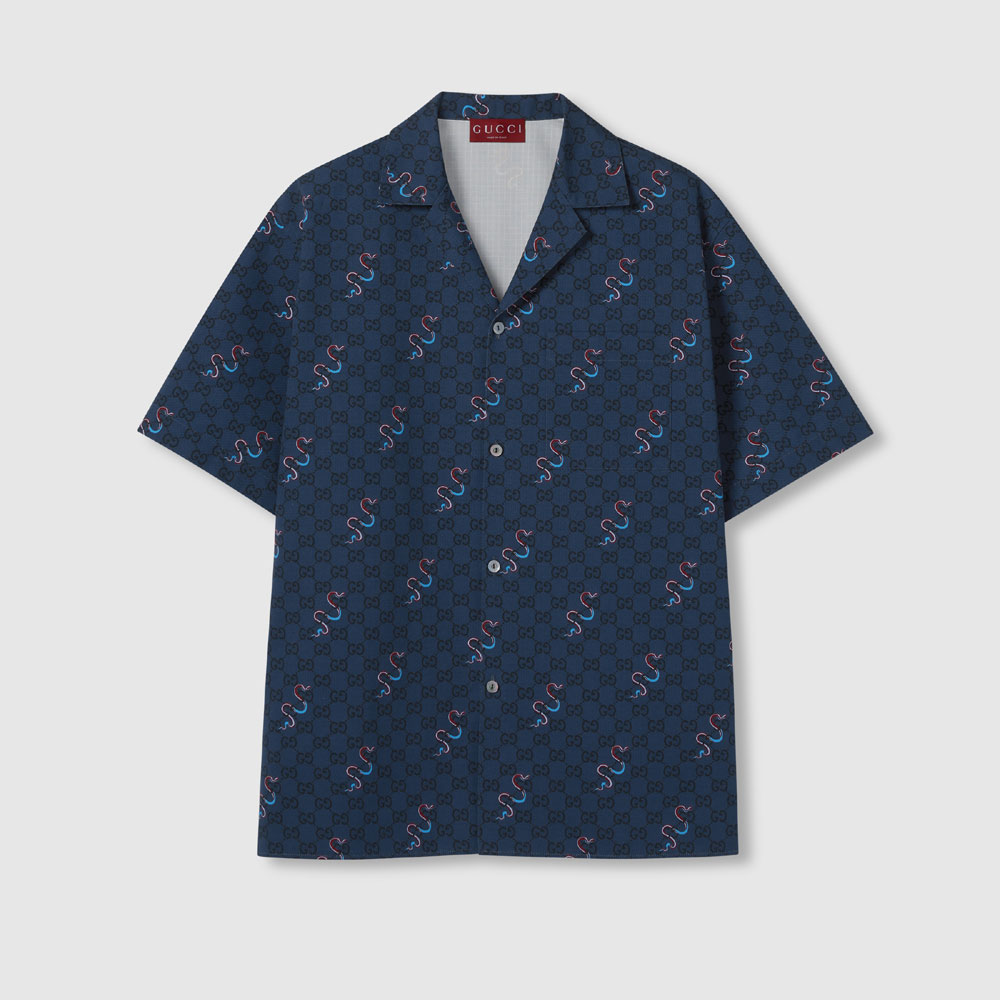 Gucci Printed cotton ripstop shirt in blue 794907 Z7ALJ 4023