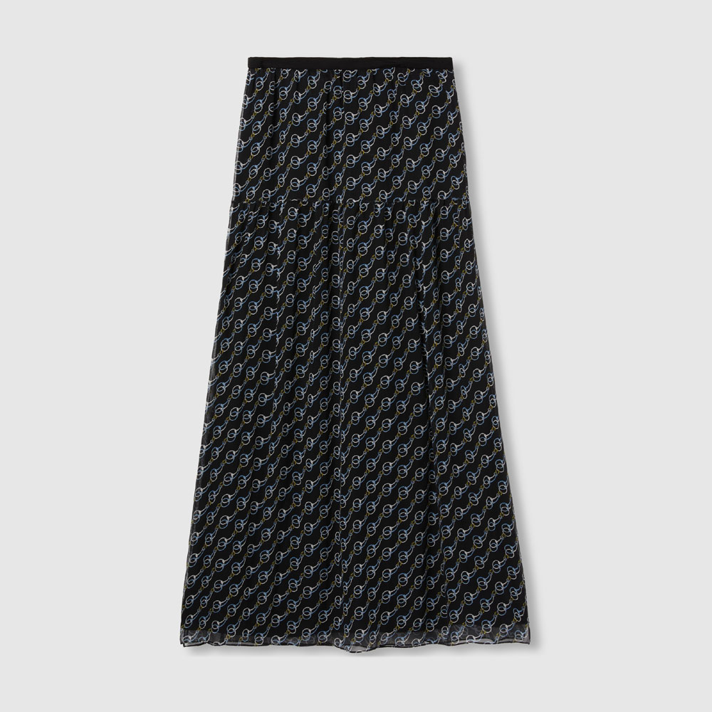 Elevate your wardrobe with the Gucci Printed Silk Skirt (818445 ZASJ9 1149) from the 2025 Cruise Line. Its monochromatic black hue and equestrian motifs offer timeless versatility. Pair it with: