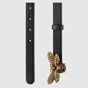 The Queen Margaret line mixes iconic Gucci details with newly established codes. The bee, thought to be a symbol of wisdom and love is enriched by glass pearls and multicolor crystals. The buckle sits on a smooth, classic leather.