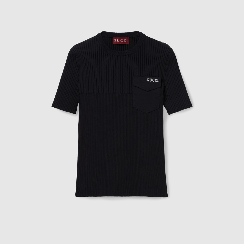 Gucci Rib fabric top with intarsia in black 829857 XKEV2 1070