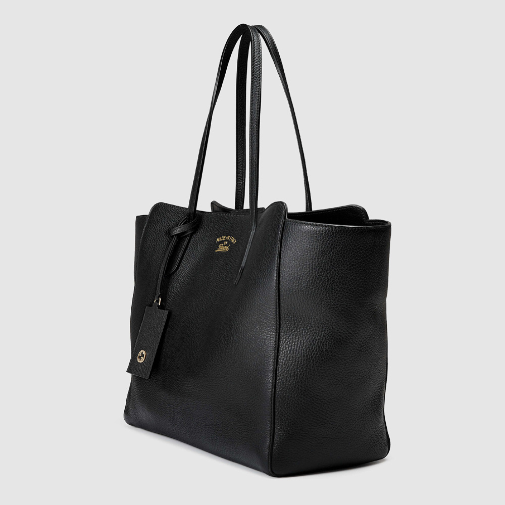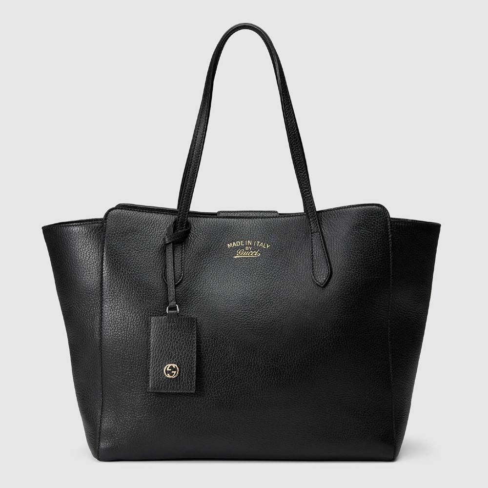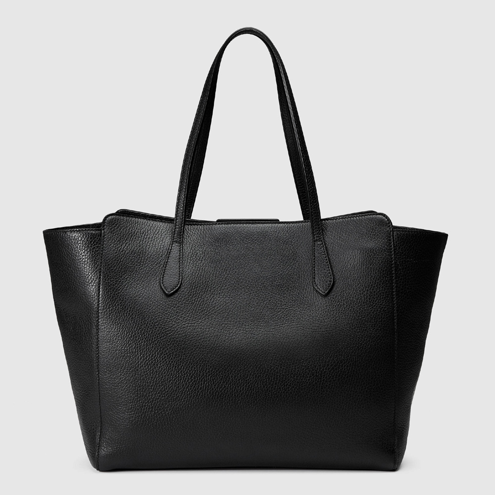 Our medium Gucci Swing tote has extended handle drops, roomy interior space and a removable ID tag with interlocking G detail. Made in our resistant, textured leather.