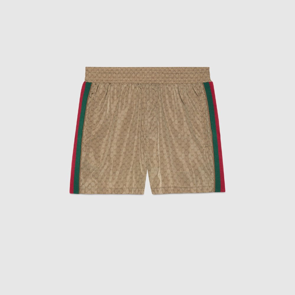 Swim shorts crafted in mini GG waterproof nylon with stripe detailing on the sides. First used in the 1970s, the GG logo was an evolution of the original Gucci rhombi design from the 1930s, and from then it's been an established symbol of Gucci's heritage.