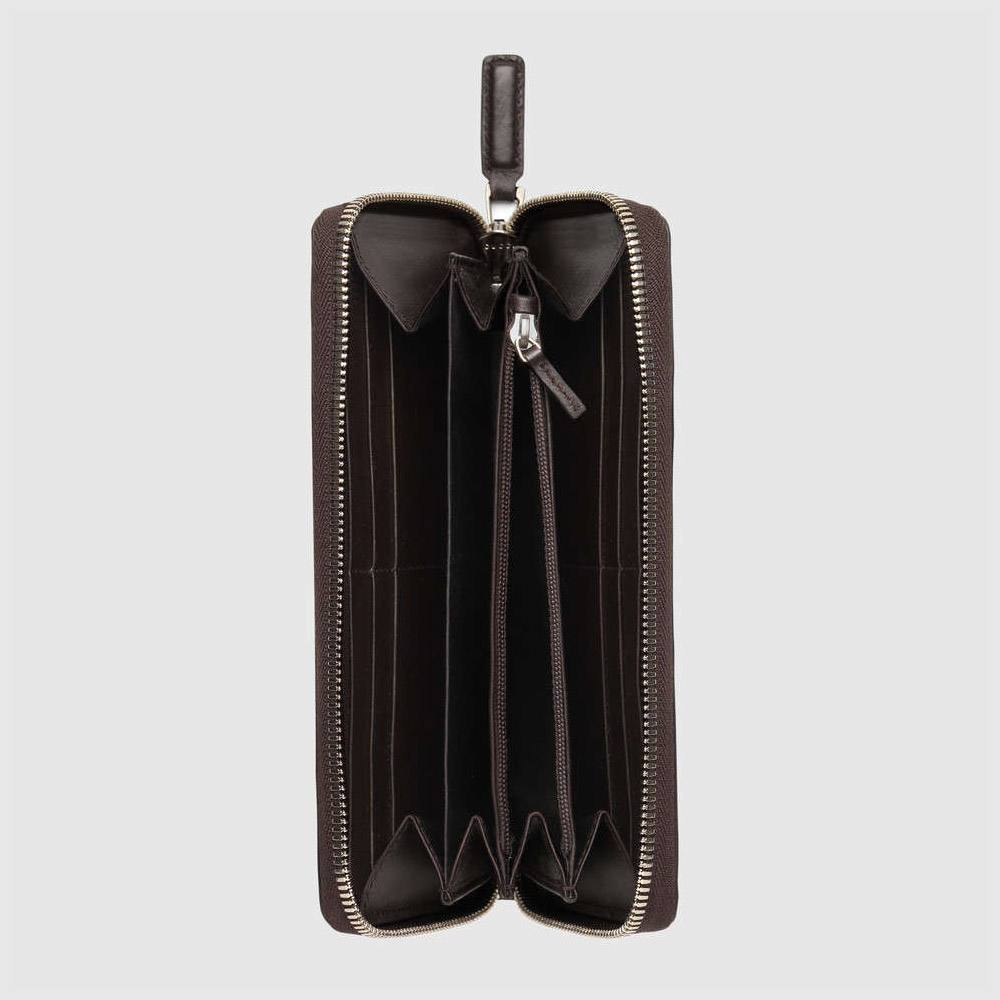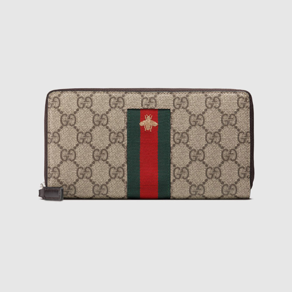 GG Supreme canvas zip around wallet with Web and bee detail.