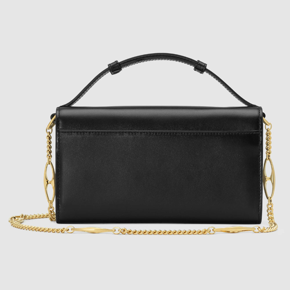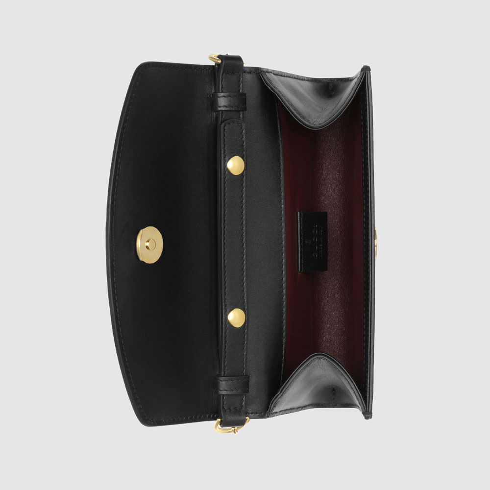Black smooth leather Shiny gold- and silver-toned hardware Interlocking G Horsebit-inspired by an archival piece. the hardware combines two of the House's most historical motifs in a mix of metals Back open pocket Adjustable leather top handle with 9cm drop Detachable Marina chain shoulder strap with 51cm drop secures with a button closure at the interior flap Magnetic snap closure W18.5cm x H11cm x D3.5cm Leather lining