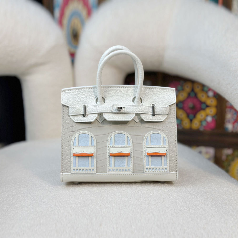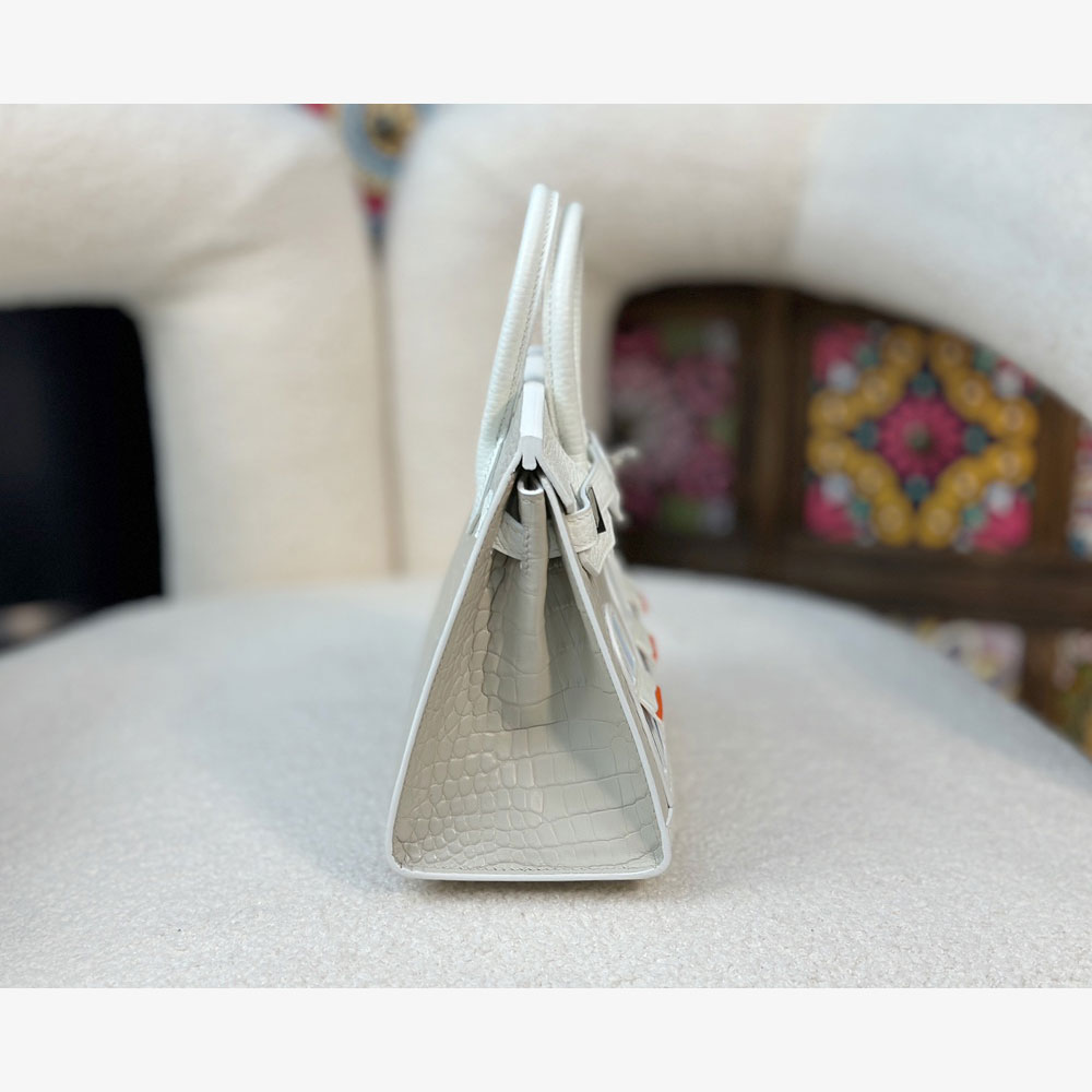 Hermes 20CM Sac Birkin Faubourg crocodile in White