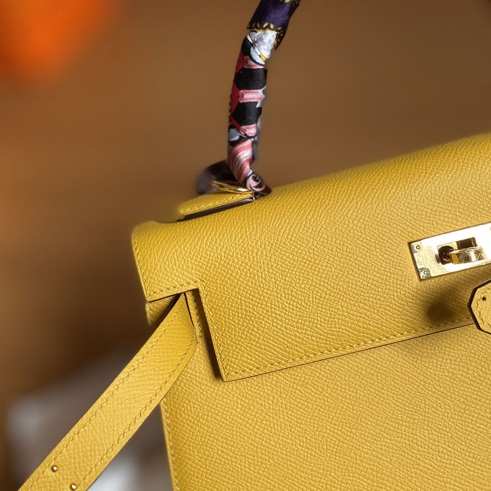 Hermes 25cm Kelly Sellier Jaune Amber 9D Epsom H027629C005