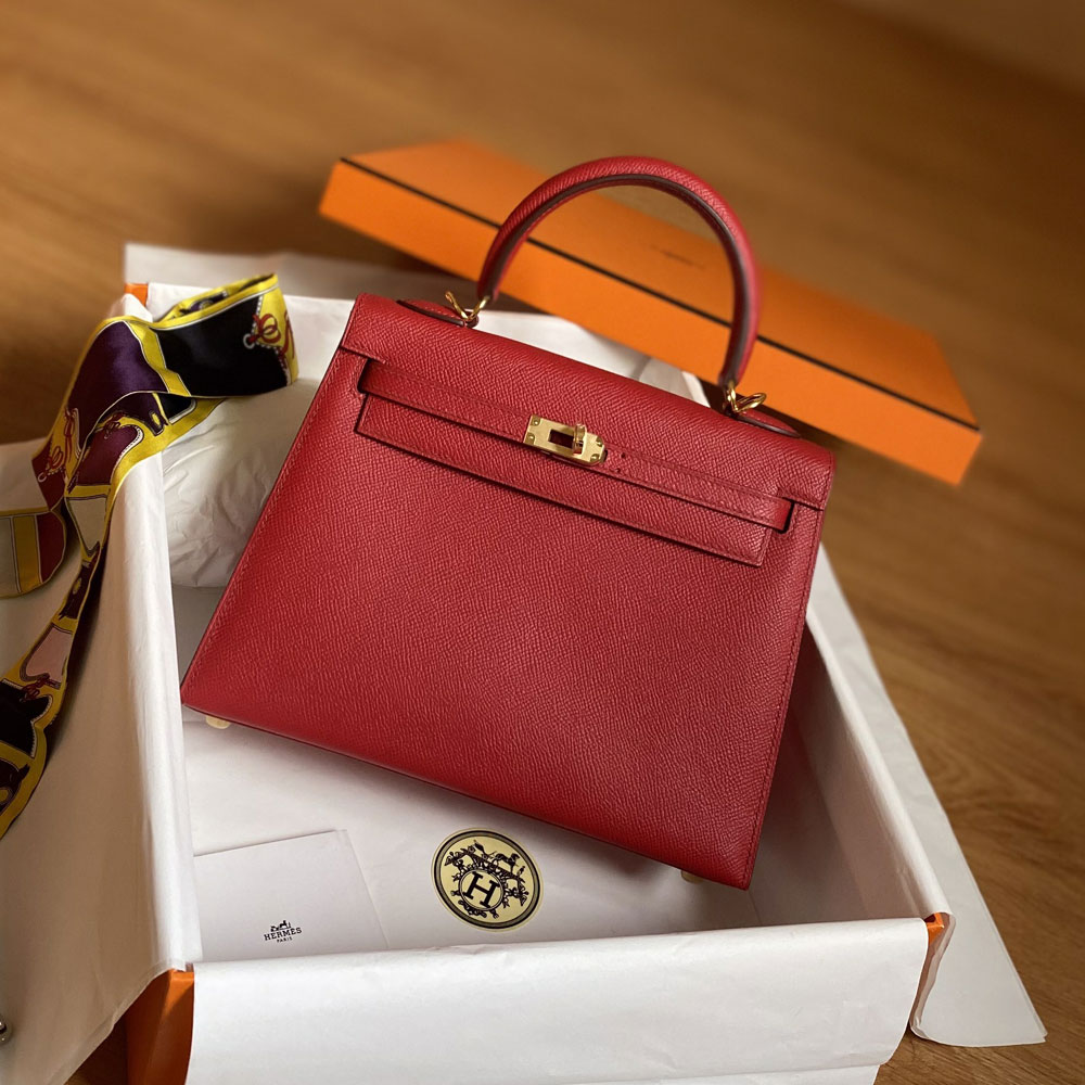 Hermes 25cm Kelly Sellier Rouge Casaque Epsom H027629C0Q5