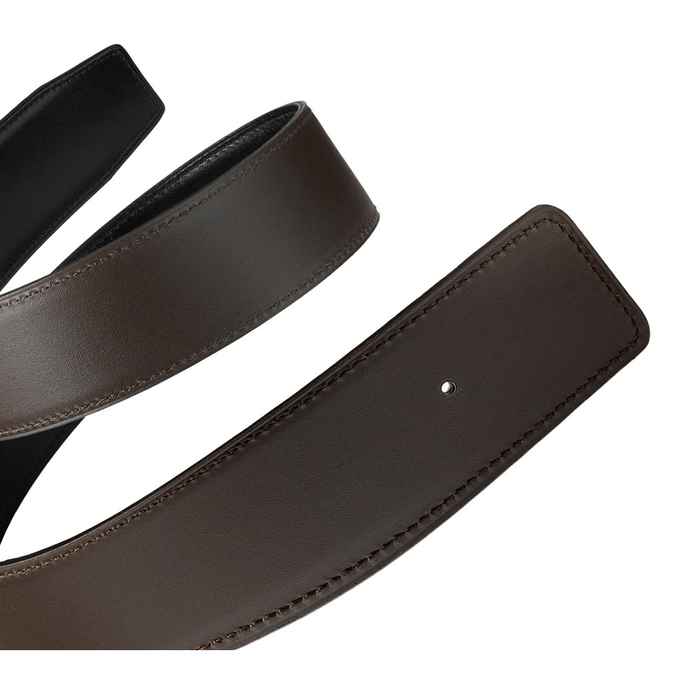 Hermes 42 mm reversible leather strap in Black/Chocolate, Box/Chamonix calfskin