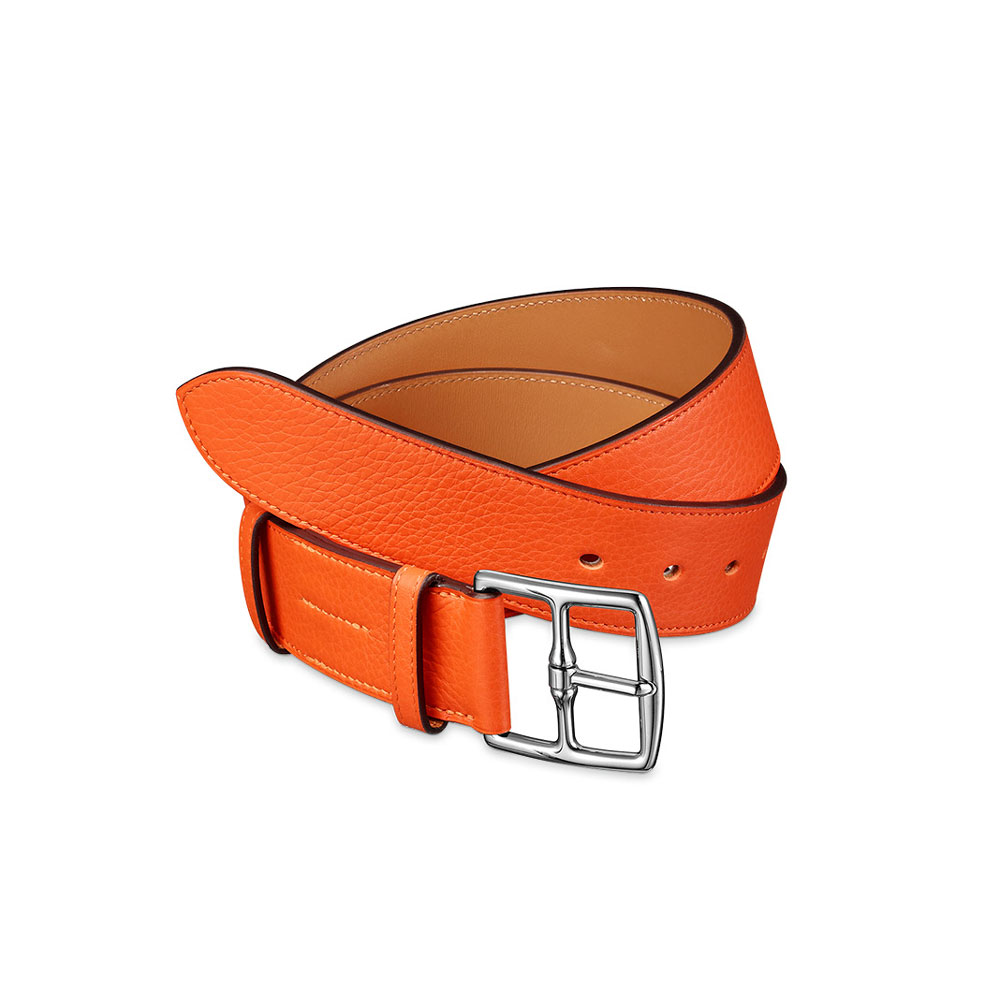 Hermes 40 mm men's and women's leather belt in fire orange taurillon clemence leather, palladium plated buckle