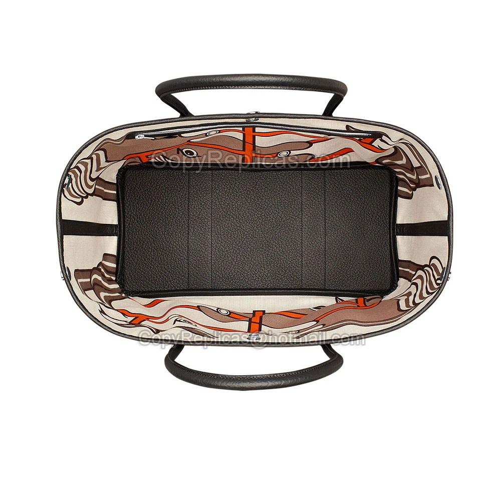 Hermes bag in black country cowhide with gray-beige "Quadrige" twill weave