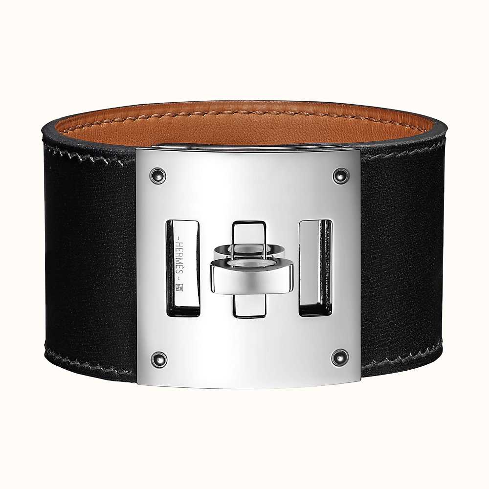 Bracelet in Box calfskin with palladium plated Kelly closure.