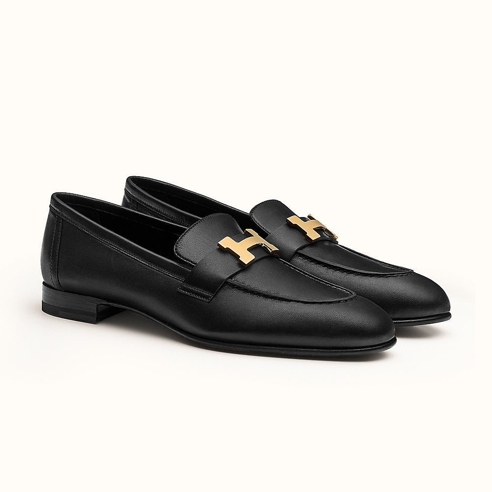 Loafer in goatskin with permabrass plated signature "H" detail.