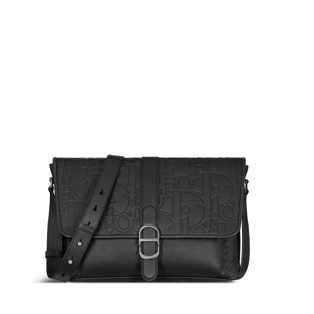 The large Dior Daily messenger bag in black calfskin, featuring a sophisticated flap design and adaptable strap for crossbody wear, is an ideal accessory for men's fall 2025 wardrobe. This spacious dior crossbody bag pairs effortlessly with casual looks like dark jeans, fitted tees, and bomber jackets for urban chic.