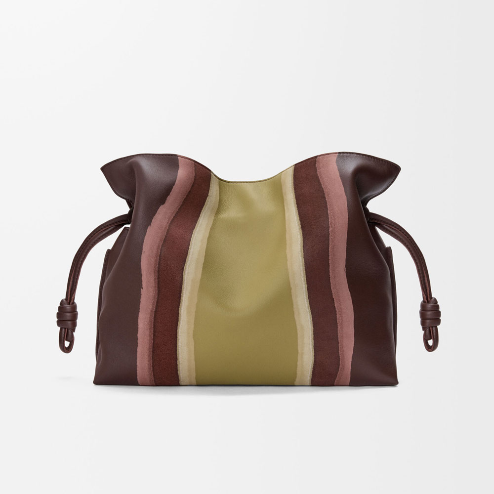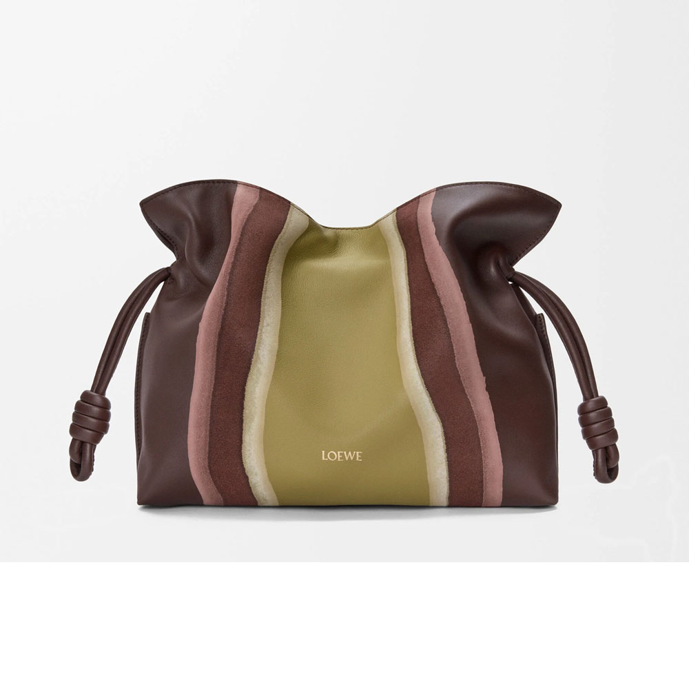 The Loewe Medium Flamenco Clutch in rich brown nappa calfskin effortlessly elevates both casual and formal looks.
