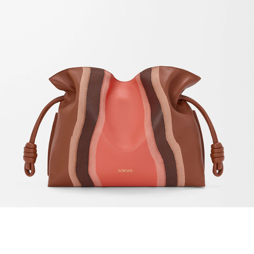 The Flamenco clutch Landscape features a relaxed silhouette with a gathered top and signature knotted ties.