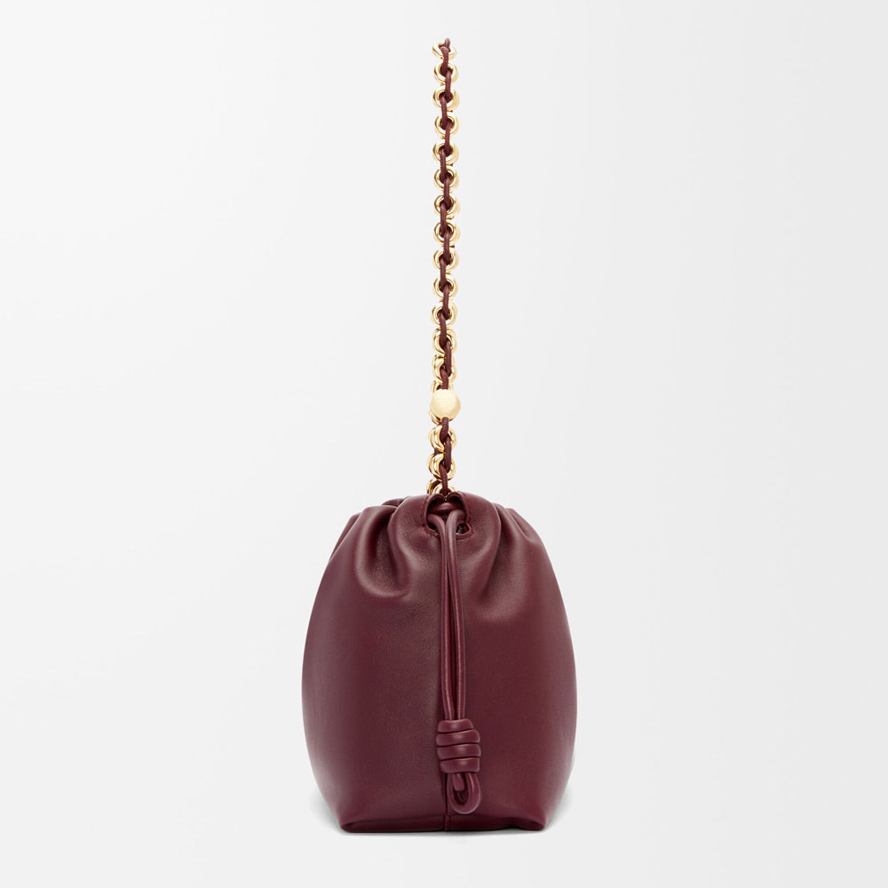 The Flamenco bag features a plush nappa lambskin construction, offering a smooth texture.