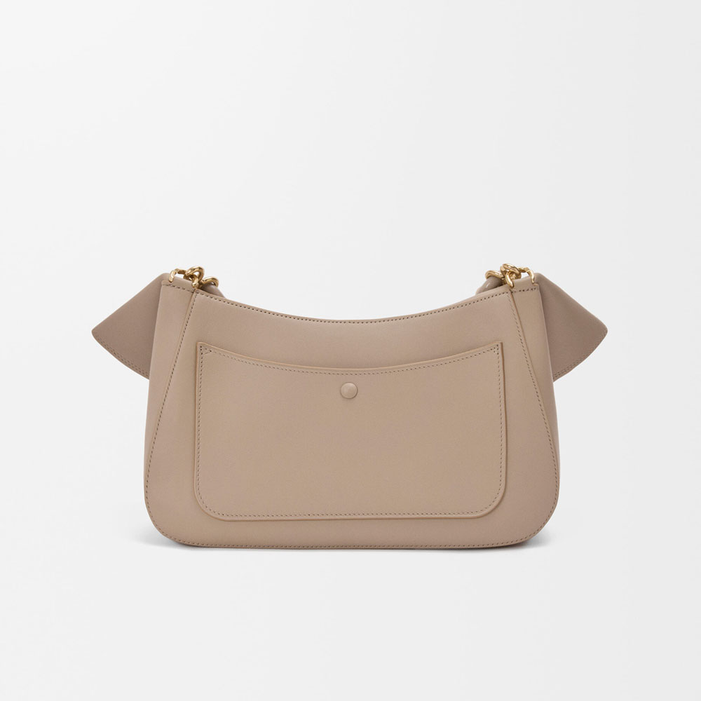 The Ola is a flexible and elegant pouch for warm seasons, featuring a unique semi-circle shape and a stylish ring chain. Crafted from supple leather.