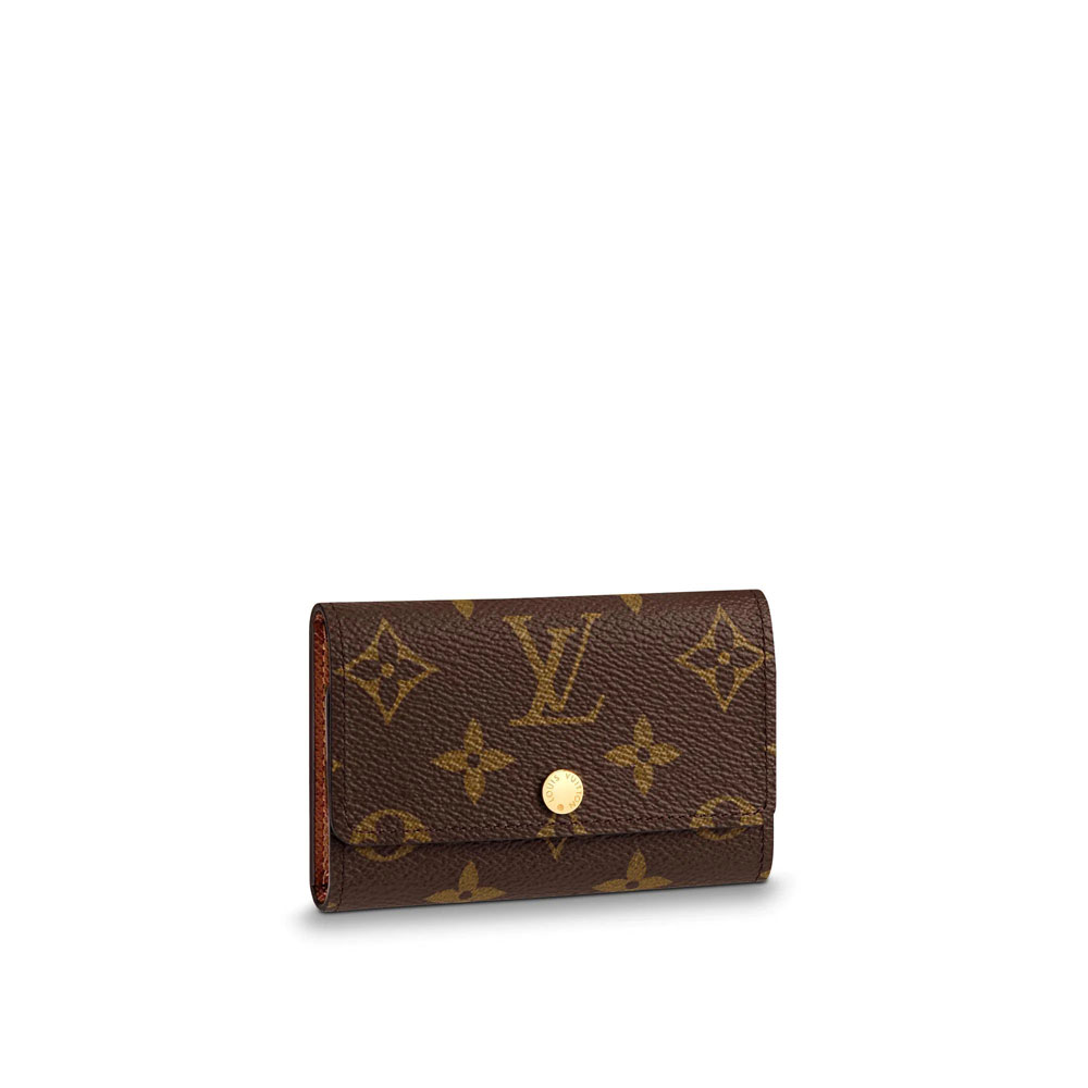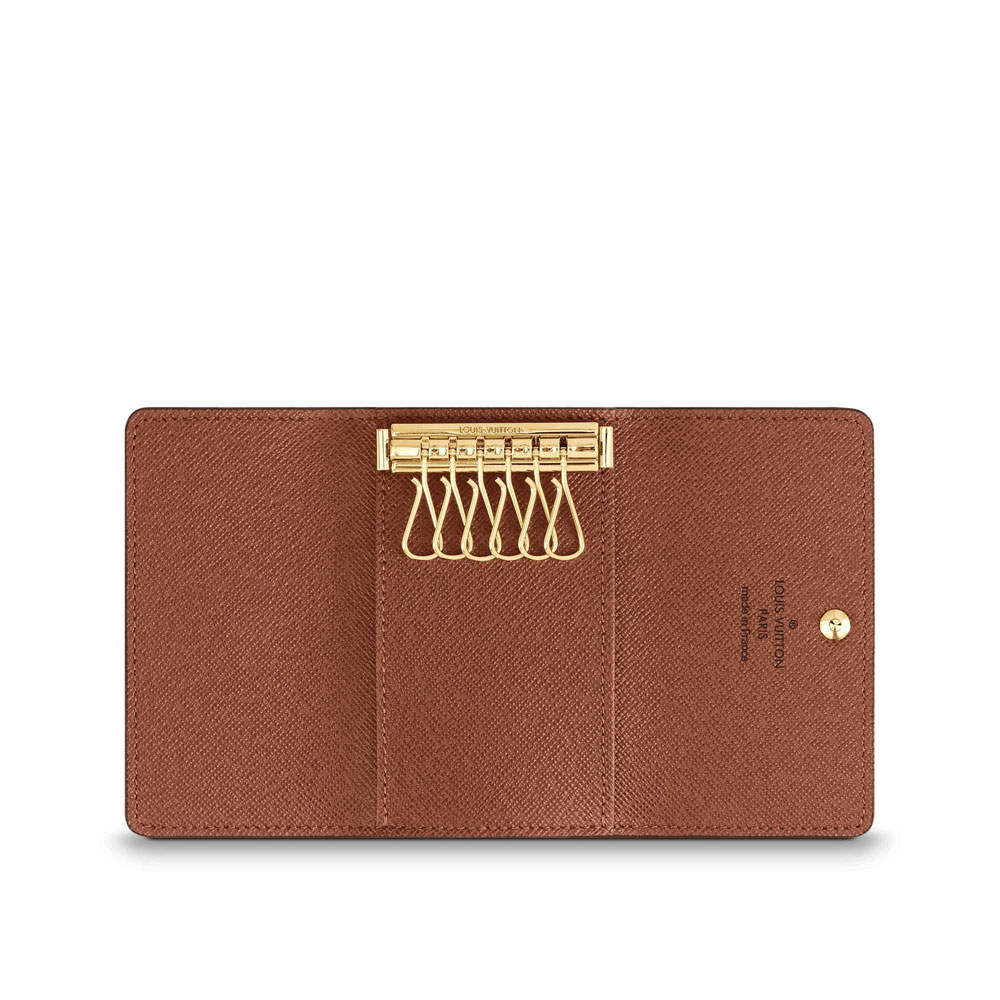 This compact case holds six keys on individual brass hooks. In Monogram canvas. it is a practical accessory for a handbag or briefcase.