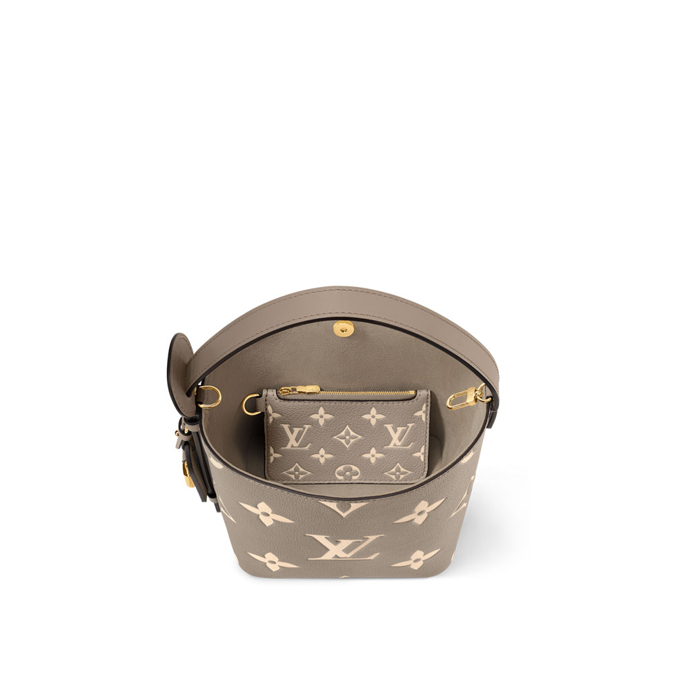 The Louis Vuitton All In BB Bucket Bag in Grey effortlessly complements a range of styles for modern women. Pair it with a tailored beige trench coat, slim-fit jeans, and ankle boots for chic daytime elegance. For evening wear, style it with a sleek midi slip dress and metallic heels to highlight its luxe gold accents. The bag's neutral grey hue also balances bold patterns, like a monochrome jumpsuit or a floral maxi skirt.