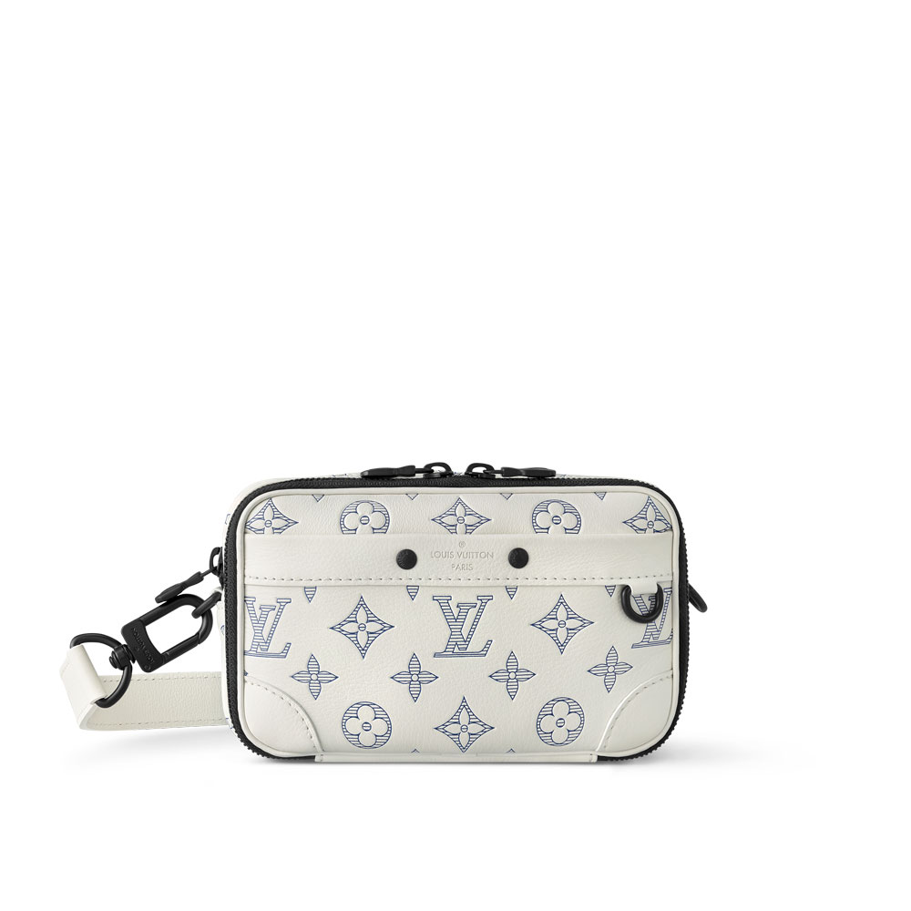 Crafted from Monogram Shadow calfskin with black-colour hardware, the Alpha Wearable Wallet combines style with convenience. The Monogram Flowers and LV Initials embossed into and printed onto the supple calf leather bring energy and give this small shoulder bag a sporty feel. Two zipped compartments keep things organised.