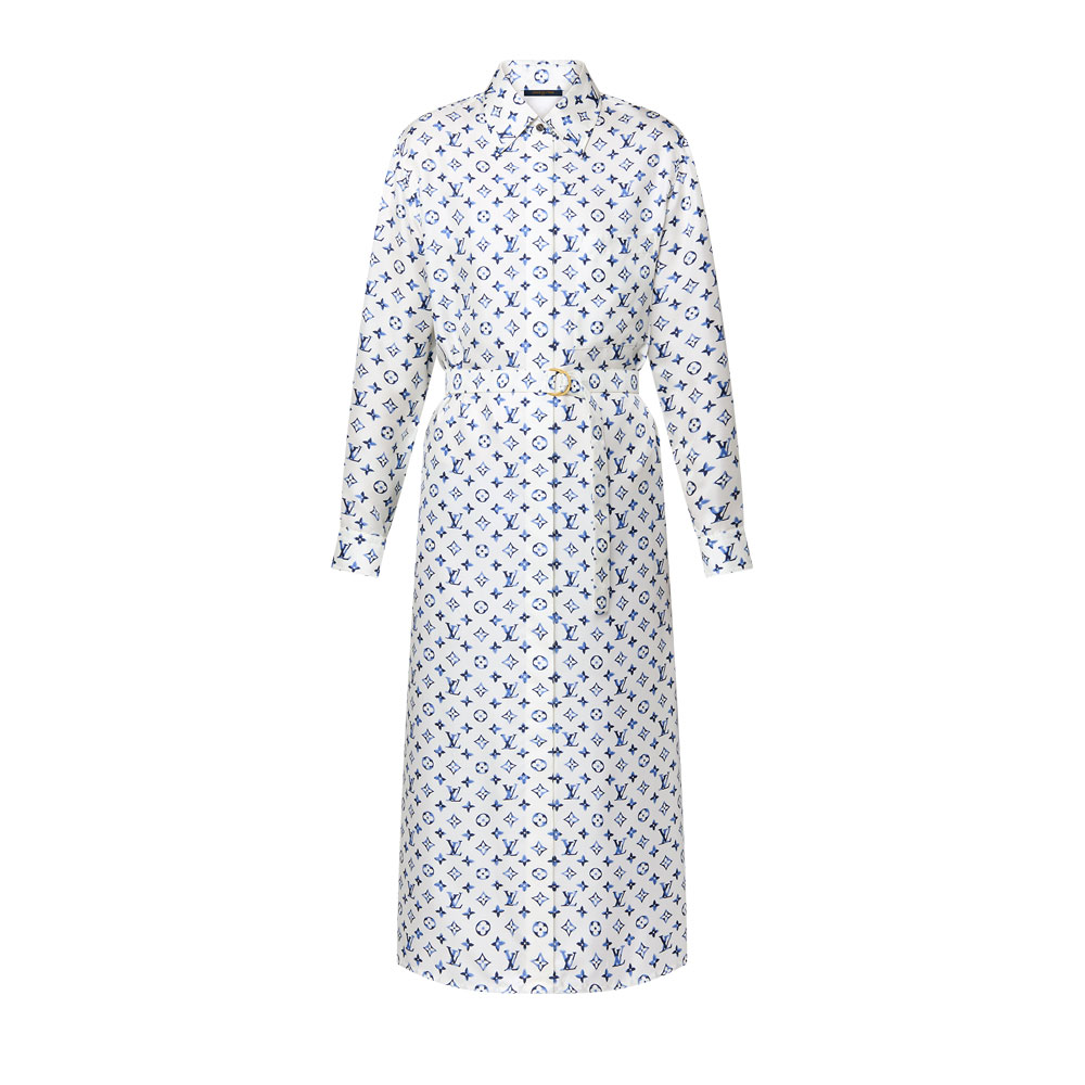 Louis Vuitton Aquarelle Monogram Shirt Dress in Blue offers timeless elegance, perfect for pairing with neutral-toned separates.