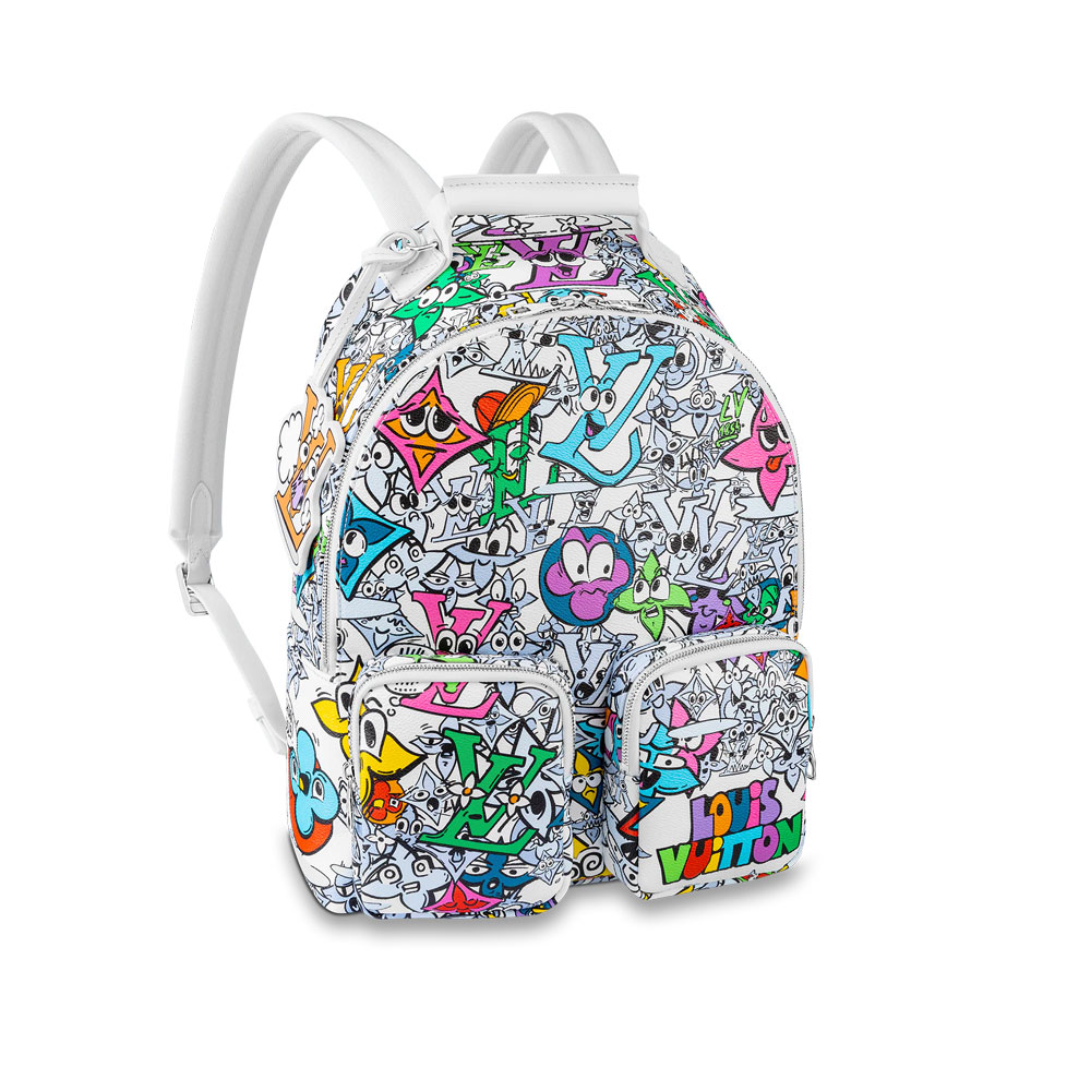 This chunky Multipocket Backpack. with its two front pockets. is made from Monogram Comics coated canvas. featuring over a hundred cartoon-character versions of the iconic Monogram Flowers and LV initials. The characters' range of emotions. from joy to sadness. deliver a message of inclusivity and positivity in a fun way.