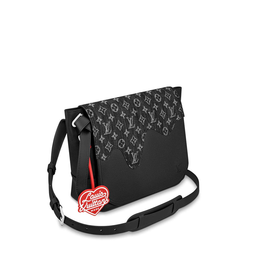 Guest designer Nigo's Monogram Drip theme for Pre-Spring 2022 gives the Besace Tokyo an eye-catching look in black denim and matching Taurillon leather. The creative design emanates Japanese dandy style with kimono-style knots in the strap and a bright red heart tag. Body-friendly and functional with its flap closure and multiple secure pockets. it makes an ideal everyday companion.