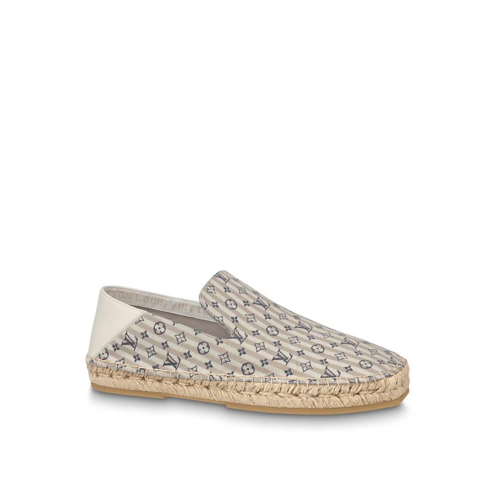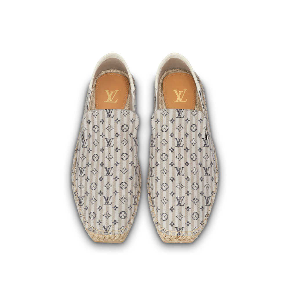 A summer essential that evokes the Riviera lifestyle. the Bidart espadrille comes in striped Mini Monogram textile. This model is crafted in the traditional way. with hand stitching and an authentic rope sole. It has an additional rubber outsole for greater durability. as well as a Louis Vuitton ribbon on the inside.