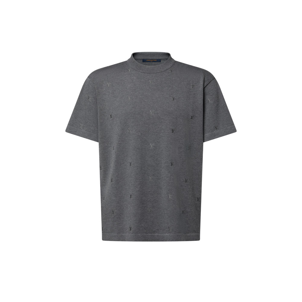 LV Blason Embroidered Cotton Tee A sleek gray crewneck designed for men who appreciate refined style. Crafted from smooth organic cotton, this short-sleeve top features the iconic LV Blason motif embroidered elegantly across the fabric. The subtle gray melange shade ensures effortless pairing with various outfits.