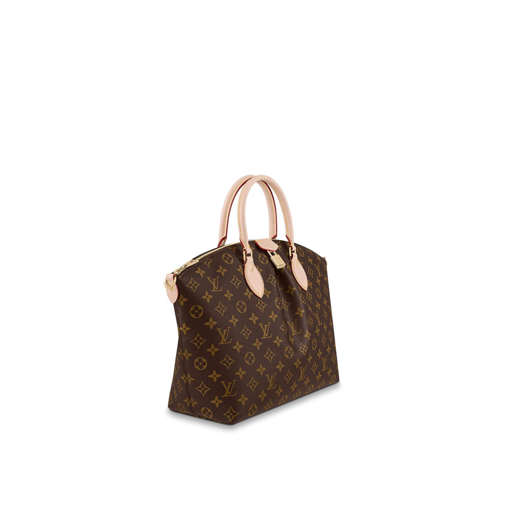 Fashioned from Monogram canvas with leather trim. the Boetie MM zipped tote boasts classic House details like a gold-color padlock and rolled-leather top handles. This functional everyday bag is large enough to fit a 13-inch MacBook Pro. It can be carried by hand or worn on the shoulder or cross-body thanks to its detachable strap.