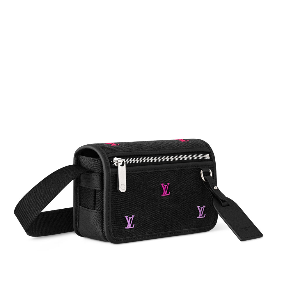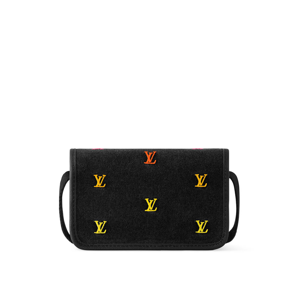 The Bosphore Wearable Wallet showcases vibrant LV Initials stitched on a dark denim background.