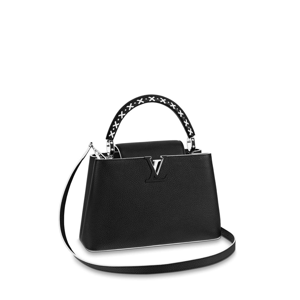 For Winter 18 this version of the Capucines PM handbag offers a playful message. executed with exacting workmanship. The top handle features an XOXO motif. created with delicately braided colored leather threads alternating with round metal studs. The embellishment lends a unique and on-trend crafted touch to this collectible piece. made from full-grain Taurillon leather lined with smooth calfskin.