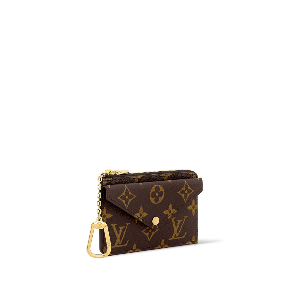 The Card Holder Recto Verso combines Monogram canvas with smart leather trim. It offers an envelope-style pocket at the front, an in-between pocket for folded bills, and a zipped compartment with a wide, L-shaped opening for coins. At the back, three card slots complete this ingenious, all-in-one accessory, which can be hooked onto a bag or belt. Size:13 x 8 x 2CM