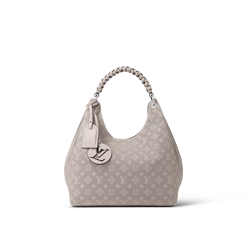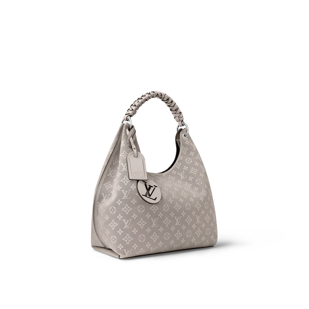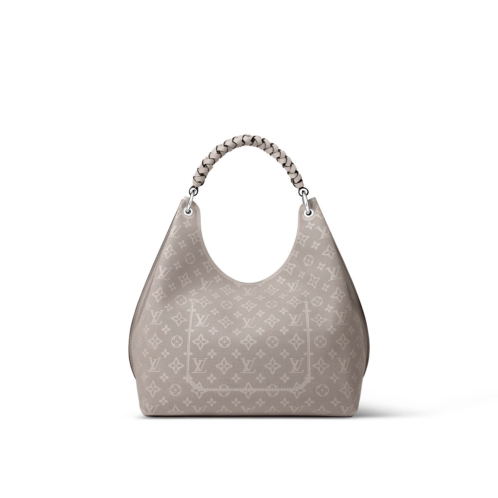 The Carmel hobo bag has ample room for essentials in its spacious interior. Made from Mahina calfskin. the Monogram pattern is plain and surrounded by 120.000 perforations. Lightweight. soft and supple. the Carmel is an ideal everyday bag. The braided top handle enables shoulder and elbow carry.