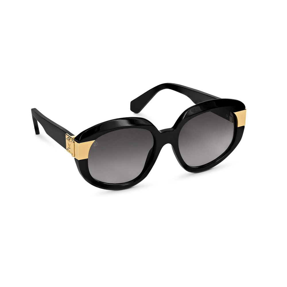 The iconic S-lock hinge on these bold Charade sunglasses is a reminder of the House's long tradition of artisanal expertise. This classic feature is incorporated into oversize. rounded frames with distinctive modern lines. Referencing Louis Vuitton's design heritage. the end tips are shaped to resemble the iconic Speedy bag.