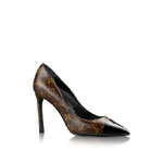 This stiletto-heeled pump in patent Monogram canvas has a flattering, feminine shape with a pointed toe, highlighted by a contrasting patent calf leather toe cap.