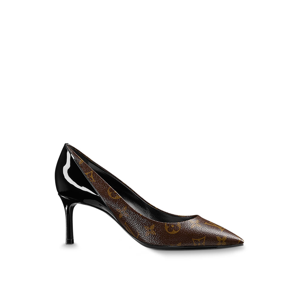 This classic pump in iconic Monogram canvas is given a twist with a contrasting back and heel in glossy patent calf leather.