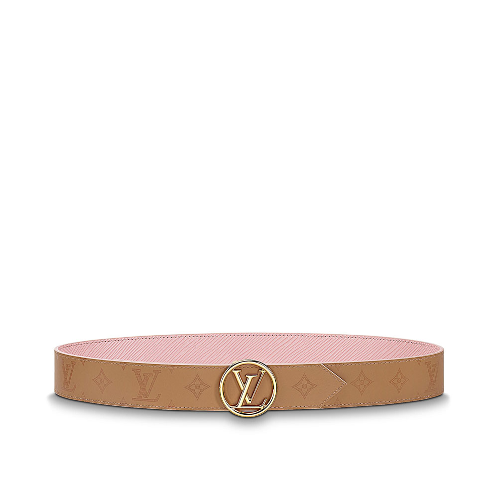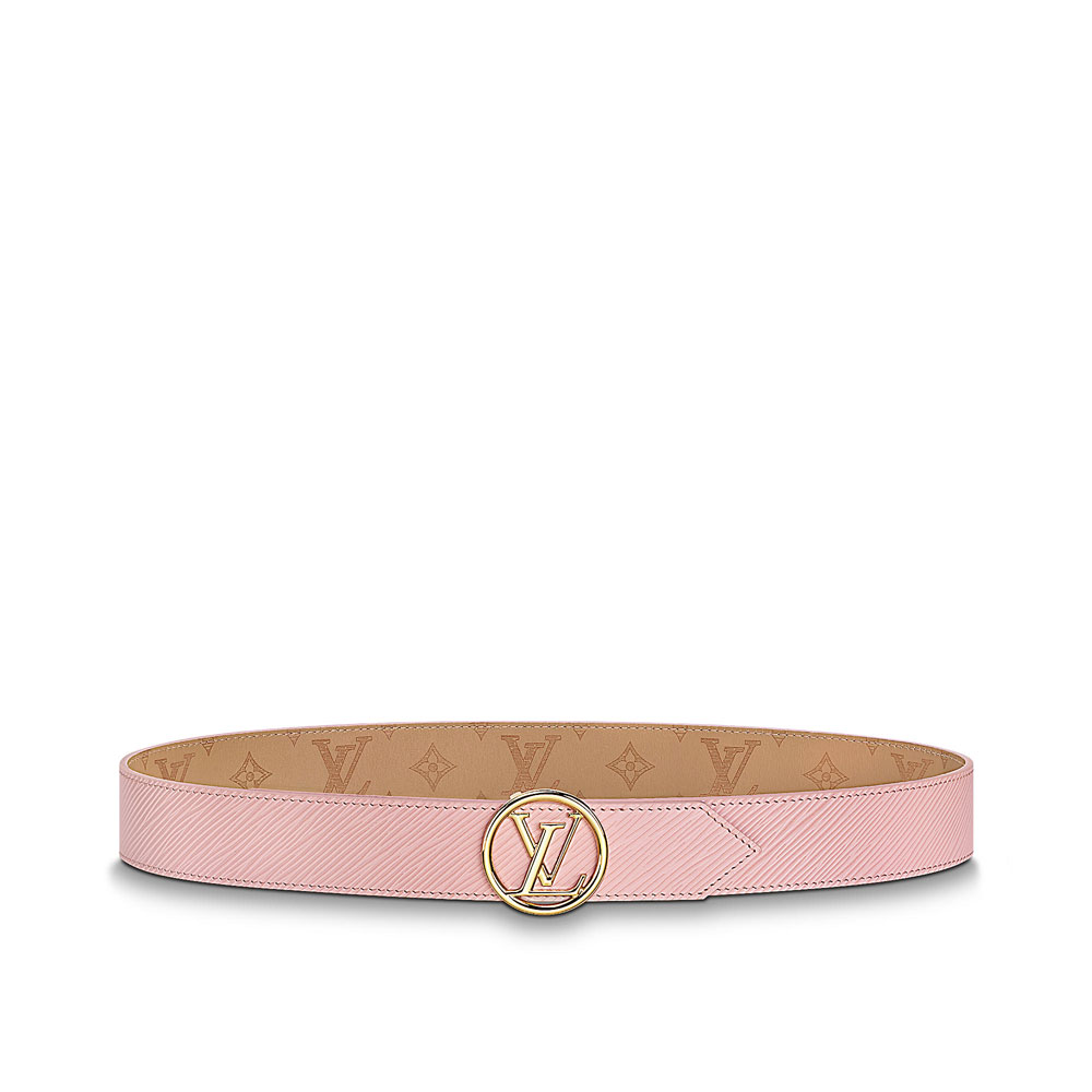Adorned with the new LV Circle signature, this reversible belt will upgrade any look. The combination of feminine Rose Ballerine Epi leather and more sophisticated Sesame LV Very leather will suit any outfit, while matching the Maison's leather goods.