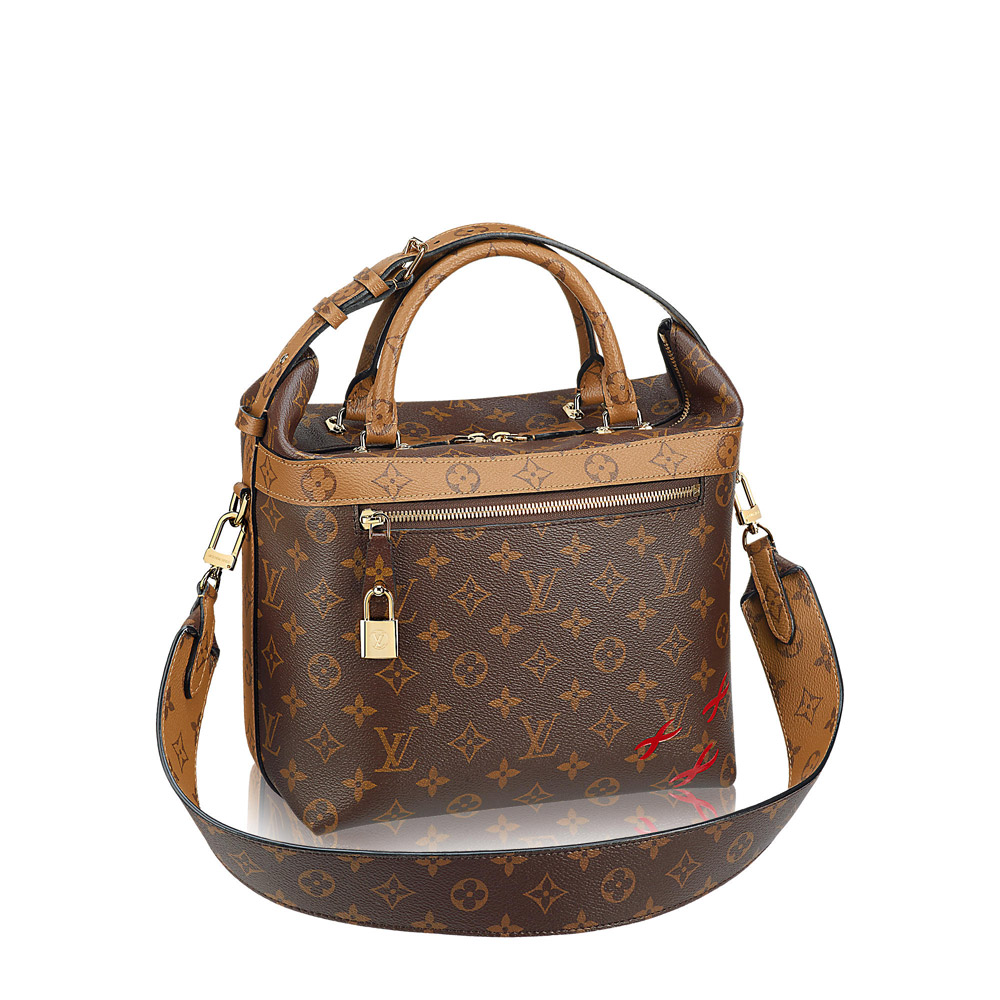 - Monogram canvas exterior - Microfiber lining - Monogram Reverse canvas trim - Gold colored metallic pieces - 2 Toron handles - Top buckle fastener closure + double zip - Removable adjustable large leather shoulder strap - External zippy front pocket with padlock - Internal flat pockets