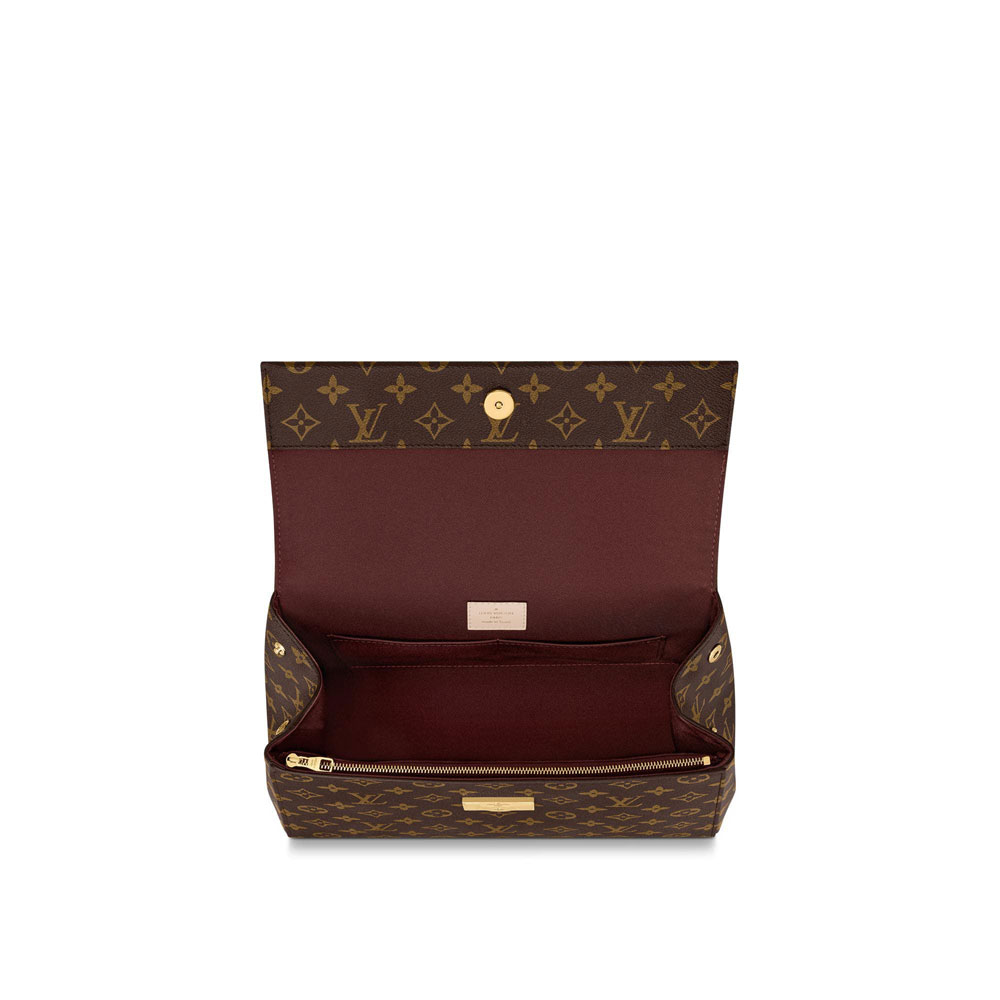 12.60 x 8.86 x 4.72 inches (Length x Height x Width) L 12.6 x H 9.3 x W 4.7 inches Creme Beige. Navy Blue. Havane Brown and Bordeaux Red Monogram coated canvas Smooth cowhide-leather trim Microfiber lining Gold-color hardware Top handle for hand or elbow carry Removable cowhide leather strap (drop: 39 cm/15.3 inches) for shoulder carry Magnetic flap closure Outside flat pocket 2 inside flat pockets Inside zipped pocket Keybell Oversized leather LV charm 4 protective bottom studs