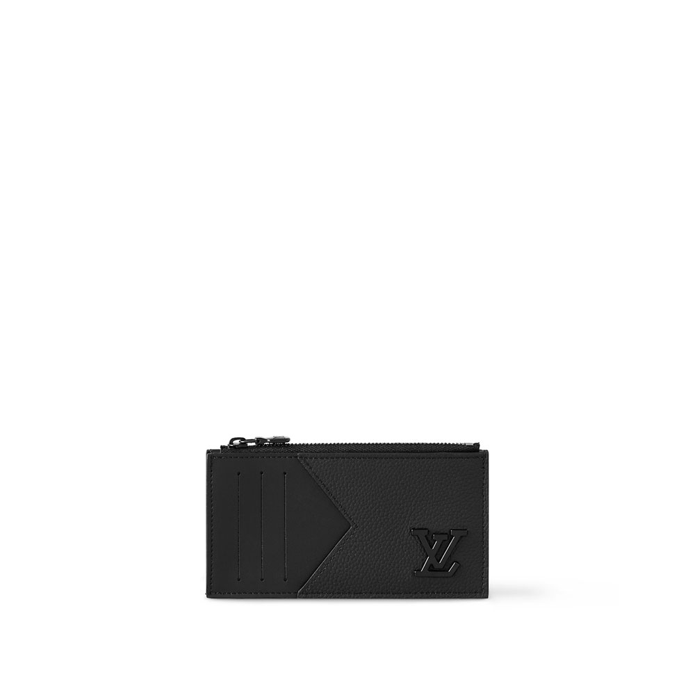 This Coin Card Holder is made from grained cowhide leather and signed with the same-color matte LV Initials, as part of the LV Aerogram Collection. In addition to four card slots and a zipped compartment for coins, theres a flat compartment for bills or receipts. Size:8 x 14.5 x 1CM
