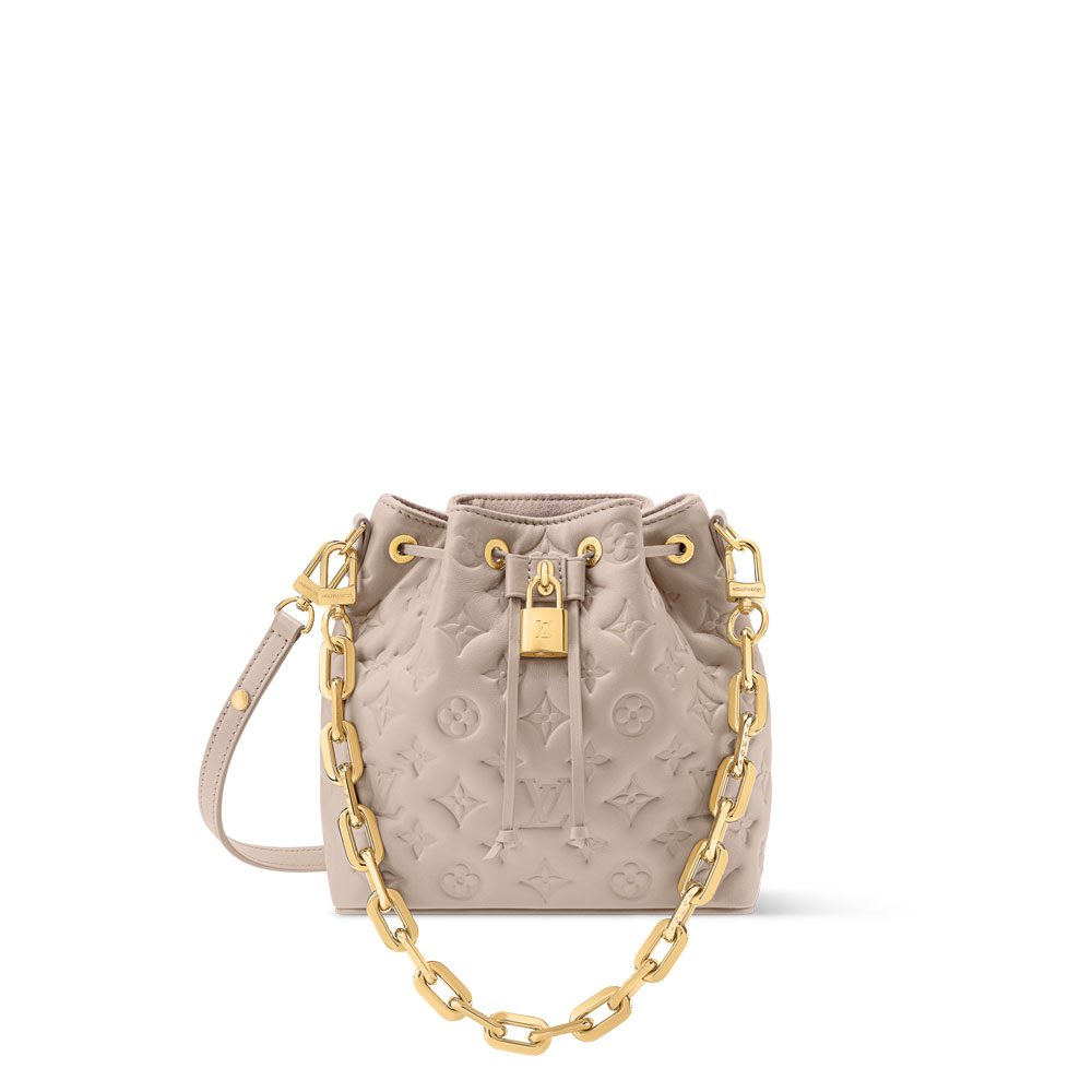 The Coussin Bucket offers multiple carrying styles with its removable chain and adjustable strap. Its practical size fits daily essentials while maintaining LV's iconic luxury appeal.